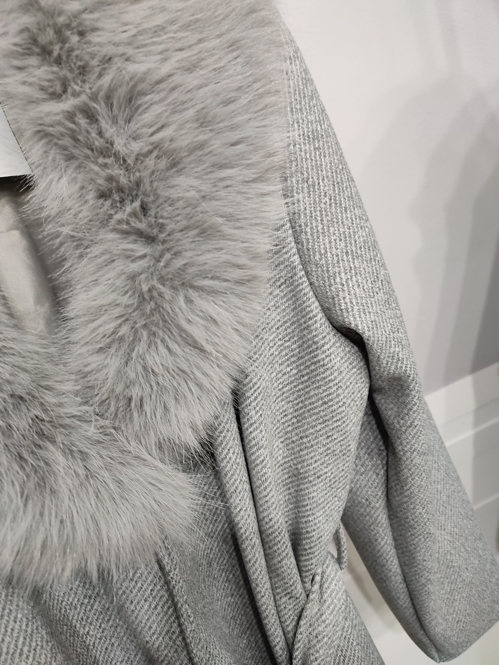 CAPPOTTO SENEGAL, lana 50,poliestere 50.Foderato. Colletto con pelliccia eco, fisso. Larghezza cm 145 lunghezza cm 118.tasche laterali, cintura. Tessuto spigato. Vestibilità fino alla taglia 58